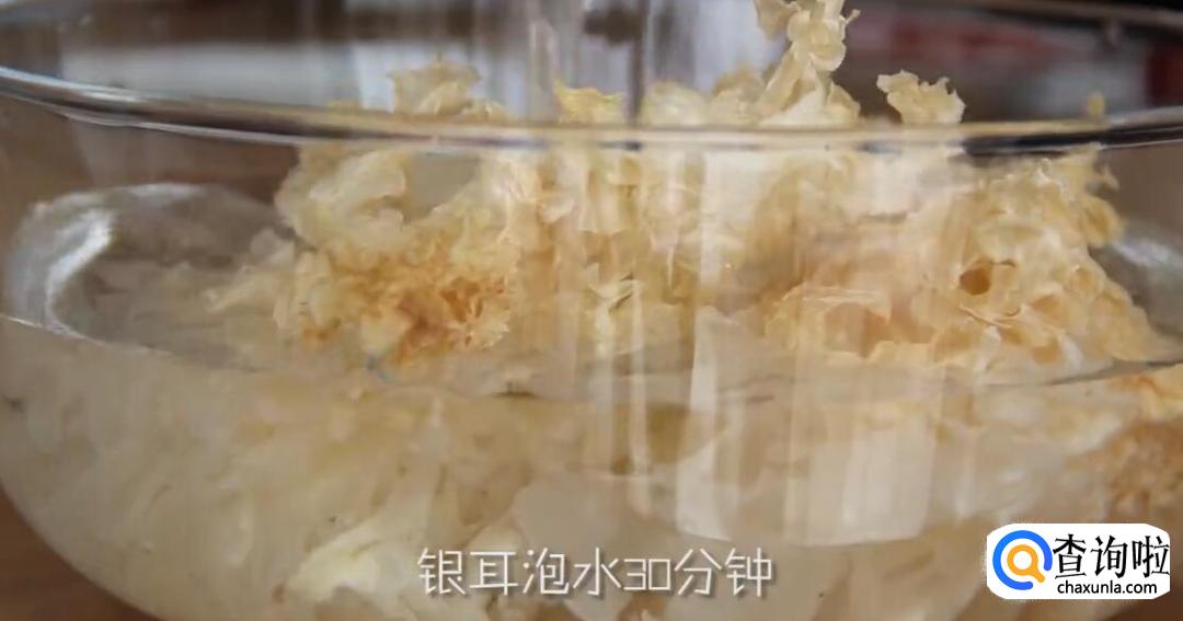 将银耳放入碗中,浸泡30分钟。