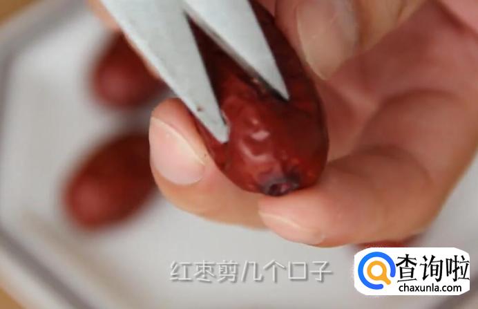 在红枣的表面剪几个口子。