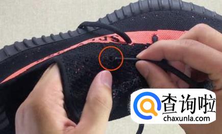 在内孔我们需要把鞋带从外面往里面穿过去,要预留好长度。