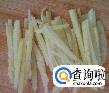 将姜去皮,接着用加切成片、再切成丝,最后剁成沫,放入碗中备用