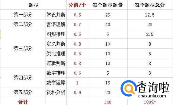2、每个题型的分值不一样。根据题目的难易程度来定,比如数学运算普遍感觉难一些,分值就高一些,类比推理相对容易一些,分值就略低一些。这种情况通常是考前就已经确定了的。