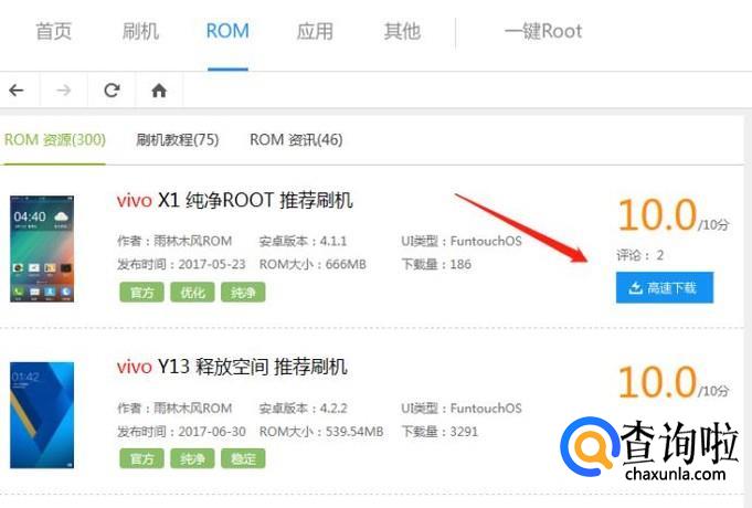 然后我们在“ROM”栏目下查找我们的手机型号,然后点击进入。