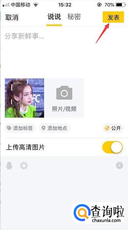 最后我们选择的配图就出现在说说里面了,点击右上角的发表即可完成。