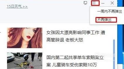 在弹出今日热点2345窗口后,点击右上角的菜单图标打开菜单,选择“不再弹出”,然后关闭即可。