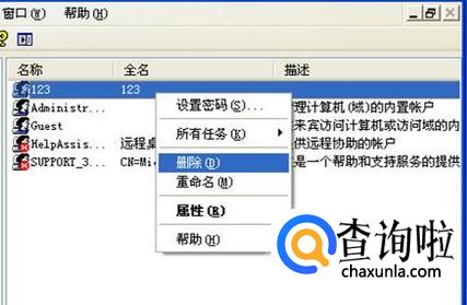 接下来会看到要删除的账户名称,在上面右键单击,选择“删除”。