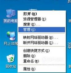在桌面的“我的电脑”上右键单击,在弹出的菜单里点击“管理”。