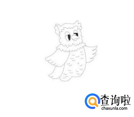 再画出猫头鹰的身体,然后在身体上画出猫头鹰的羽毛,如图所示: