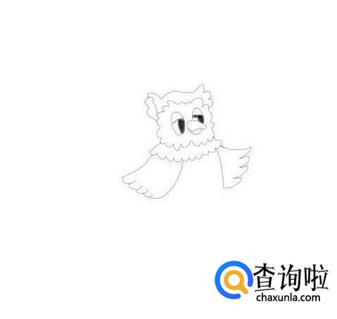 在头部下面画出猫头鹰的脖子,然后再画出猫头鹰的两只翅膀,如图所示:
