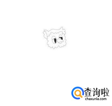 在猫头鹰的头部轮廓上画出猫头鹰的面部,然后再画出猫头鹰的眼睛和嘴巴,如图所示: