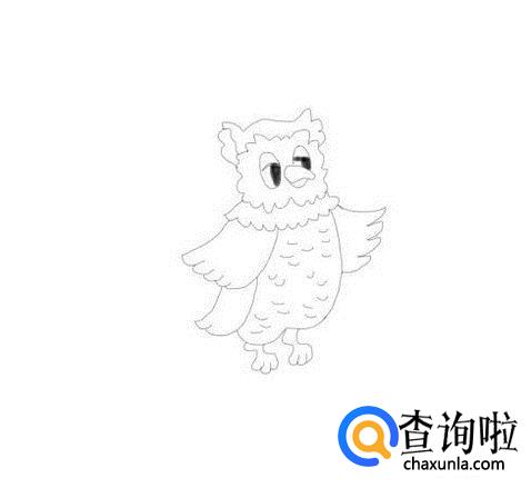 最后在猫头鹰的身体下面画出猫头鹰的两只爪子,这样可爱的猫头鹰就画好了,如图所示:
