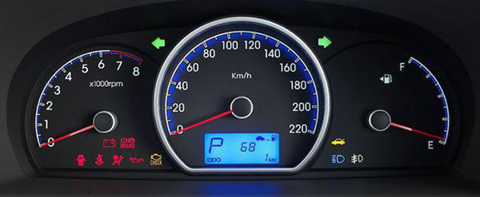 车仪表板中最显眼的是车速里程表,它表示汽车的时速,单位是km/h(公里/小时)。汽车里程表实际上由两个表组成,一个是车速表,另一个是里程表。