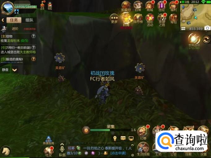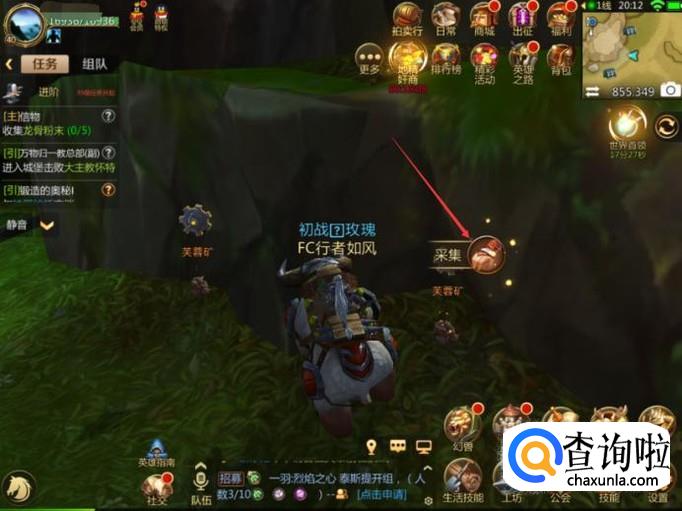 这样角色就会自动前往矿石所在地了,到达了目的地后,接着点击页面中的【采集】图标。
