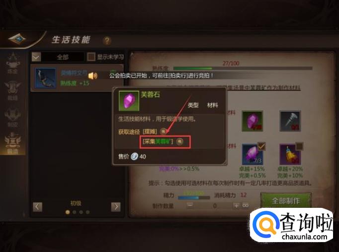 进入到【锻造】页面后在必备材料栏中点击矿石,之后再点击采集矿石。