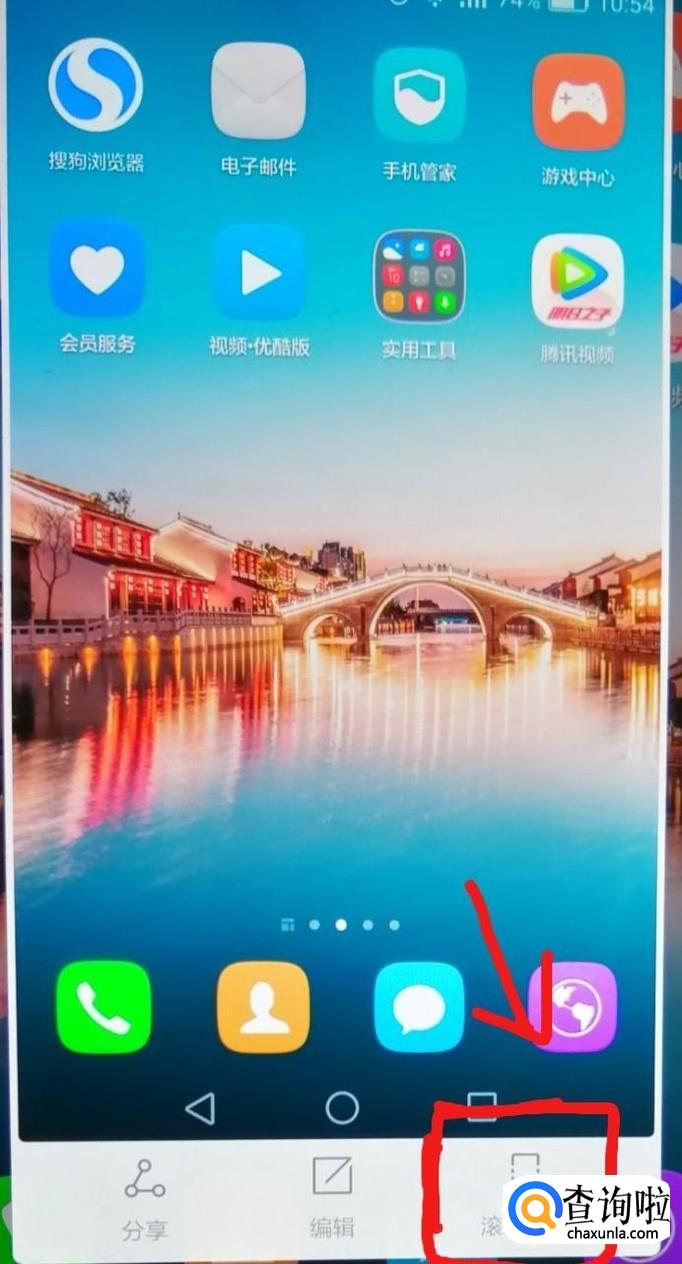 先找到你想截长图的地方,点击截屏键(同时按下 音量下键+息屏键)