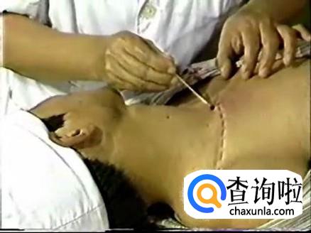 穿刺针以后在稍稍推进,医护人员取下注射器,另一只手堵住针,让病人暂时暂停呼吸,在将充满等渗生理盐水的胶管插入,在导管合适的位置固定导管,徐徐退出穿刺针。