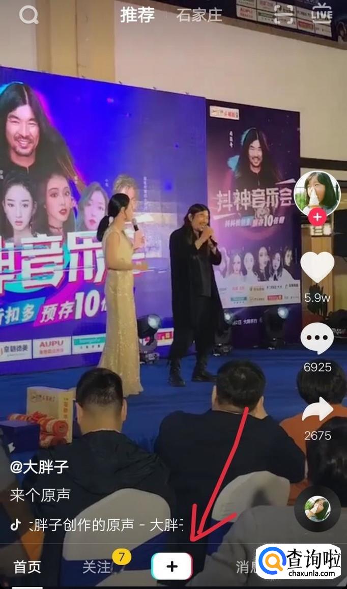 进入抖音之后点击中间靠下部分的“+”,进入拍摄,如下图。