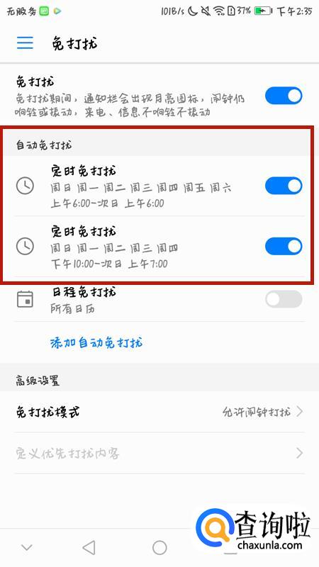 我们再来看看防打扰模式的时间,可以知道这里设置的是全天免打扰。如果想要重新设置免打扰时间可以自己修改。