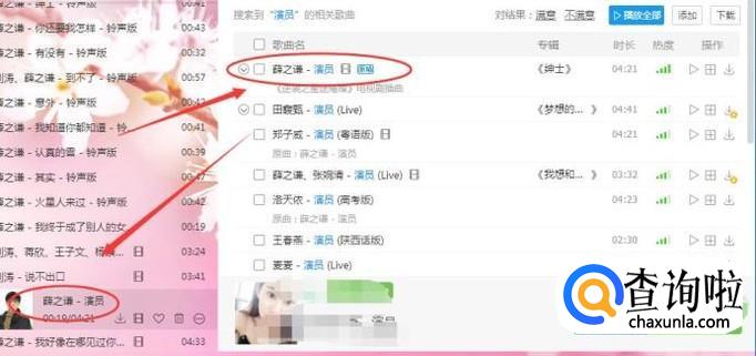 然后在下方就可以弹出歌曲名称,比如这首歌曲就是演员,如下图所示: