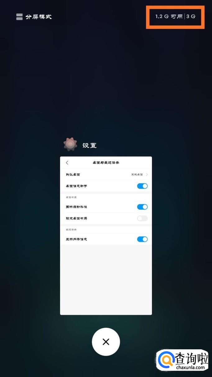 现在直接打开任务菜单,就可以在右上角看到内存剩余信息了,这个方法也同样适用于MIUI9。