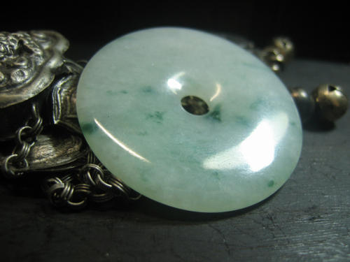 另外,购买者也可将玉器用细绳吊在空中,用金属轻轻敲击,若是A类玉会发出一种清脆悦耳之声;如果是人工处理品则会发出很实、很低沉闷哑的声音。