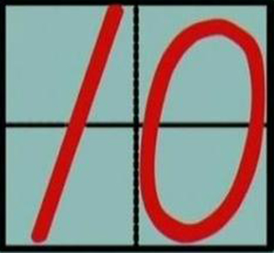 “10”占两格,左边一格写“1”。右边一格画一格碰上,下,左,右四边的椭圆。