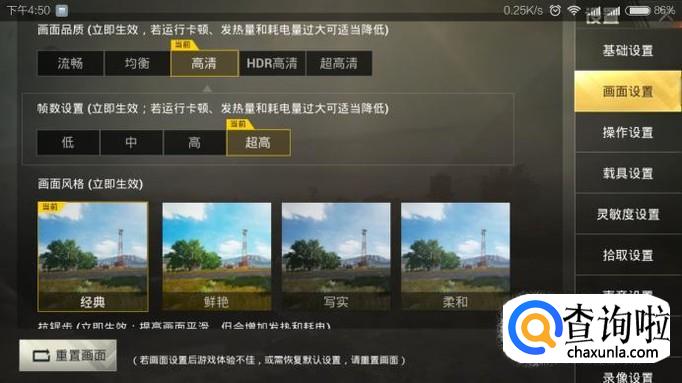 然后我们就可以根据自己的手机的型号,设置画面品质和帧数。