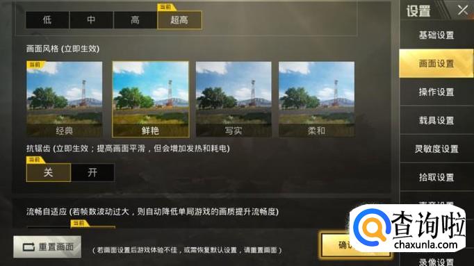在设置里面点击画面设置。