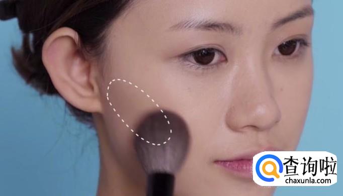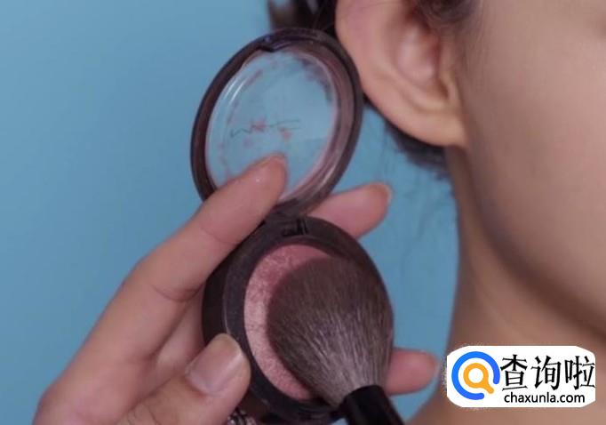 然后,用散粉刷涂抹上散粉定妆,再在颧骨的位置涂上焦糖色或者深红色腮红。