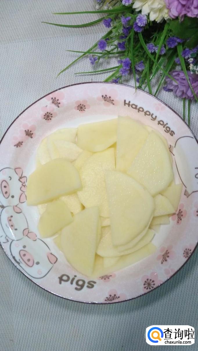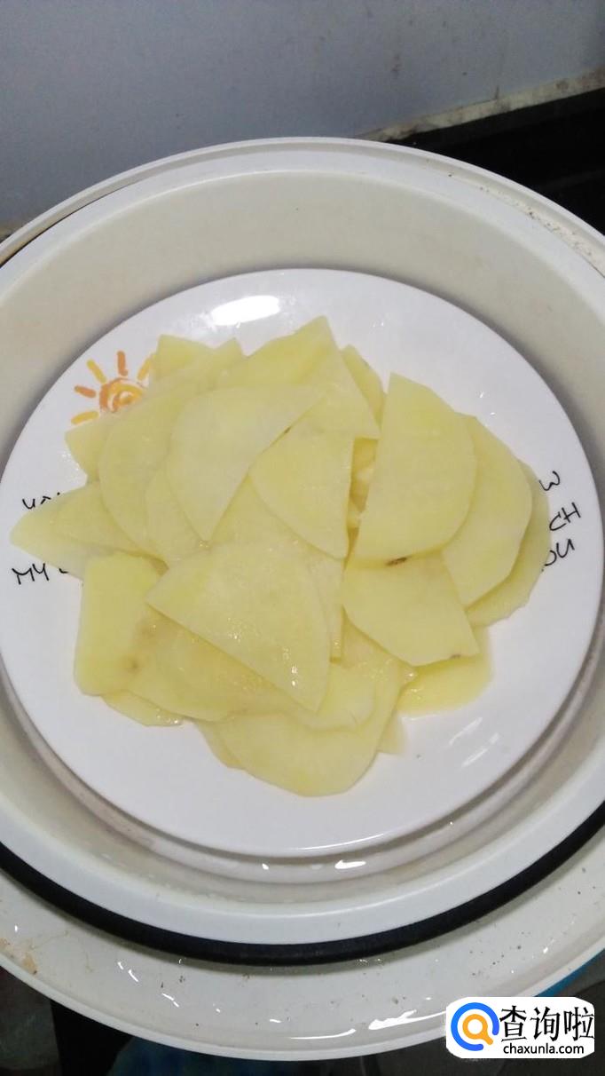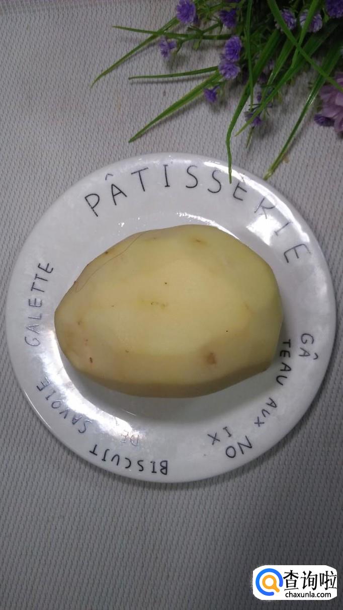准备一个土豆,洗净去皮后切成块,放入蒸锅,大约蒸15分钟左右,蒸至软烂。