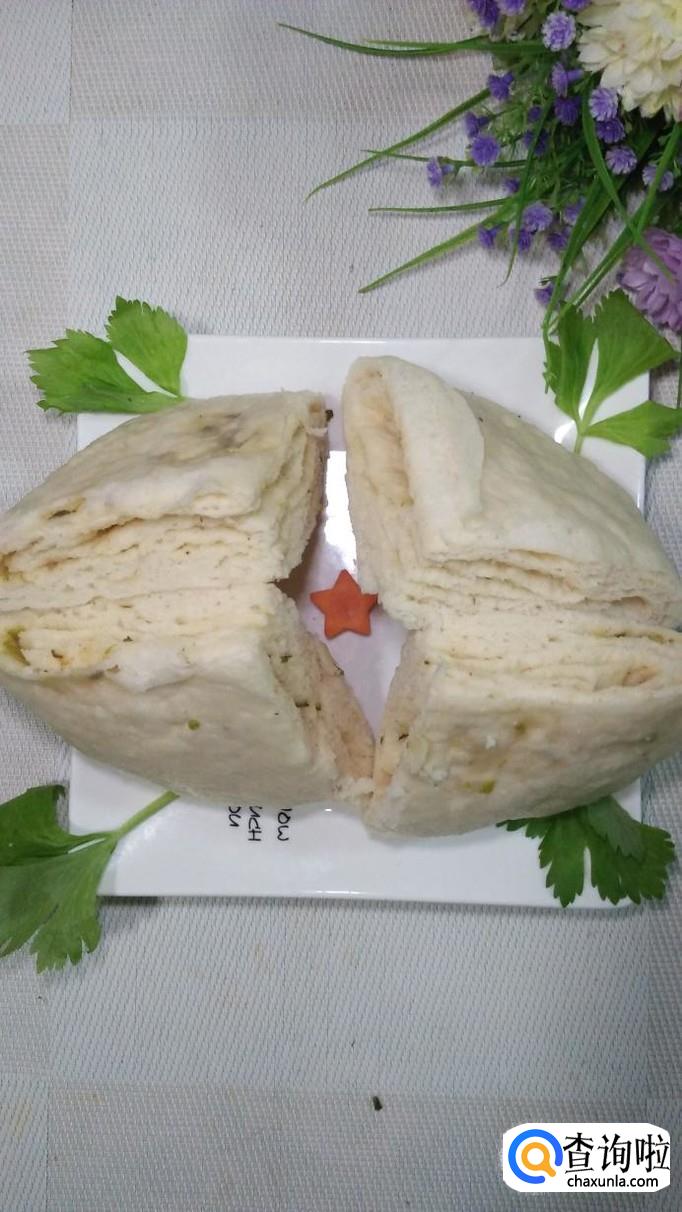 出锅装盘,用刀切开,可以看到千层饼,又松又软,非常好吃,配上几片芹菜叶更加好看,孩子们看了非常有胃口,家里人都非常喜欢。