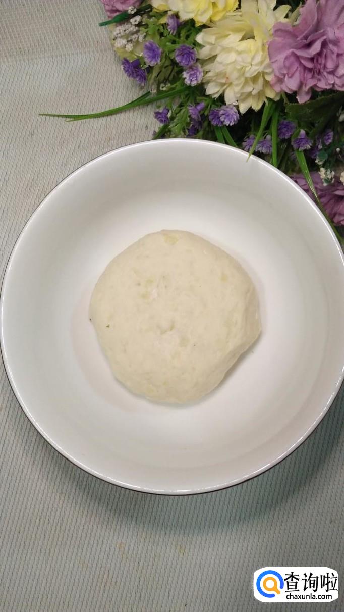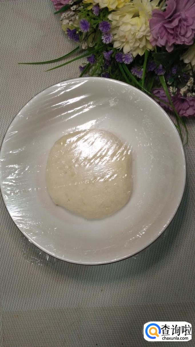 碗中加入少许清水,用手揉一下,和成光滑的面团,水的量不要太多,和成的面团,不粘手就可以了。
