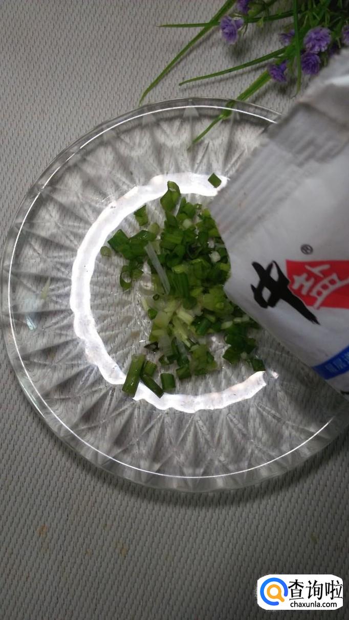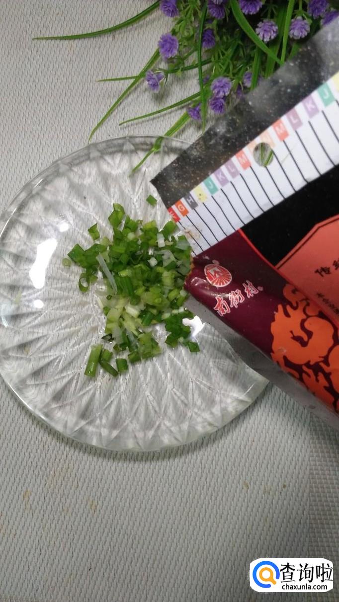 准备适量小葱,切碎后放入适量盐,鸡精,五香粉,再加入适量熟油,搅拌均匀。