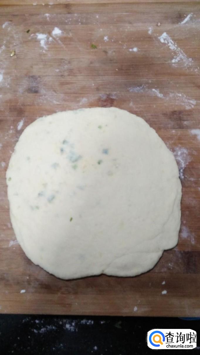 叠加好之后,搓成圆形,然后再用擀面杖擀成圆片儿,这就是千层饼了,如图所示。