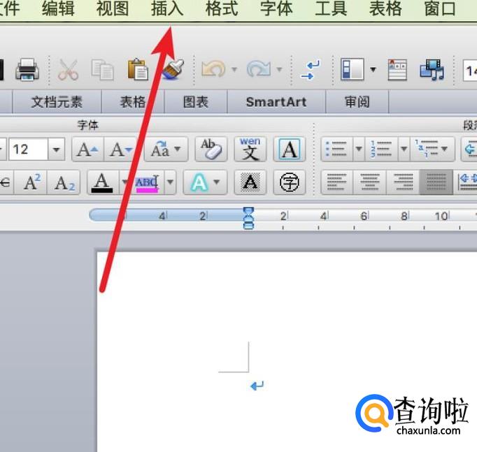 打开word,点击菜单栏上的‘插入’。