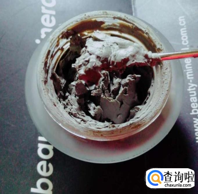 打开黑泥面膜,用小勺子舀一些,在脸上涂,重复直到把整张脸敷满。