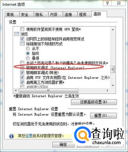 在下方找到【禁用调试脚本】选项,如下图所示: