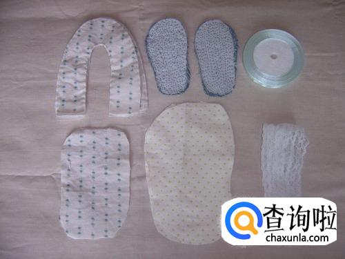 鞋后跟缝和,再在鞋边缝上一圈蕾丝花边,再用宽约2CM左右的同花色布条包好鞋面的两边。