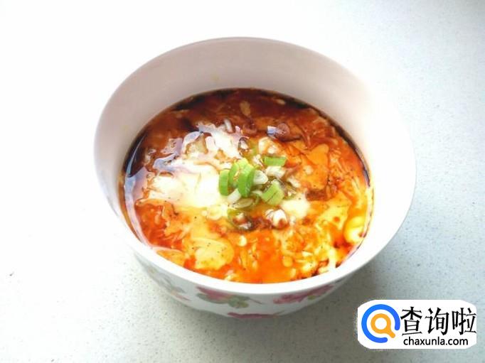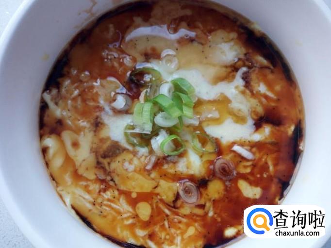 然后放入切好的小葱段,再滴入适量的芝麻油,酱油(根据个人喜好掌握)。