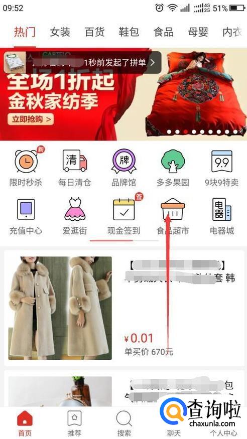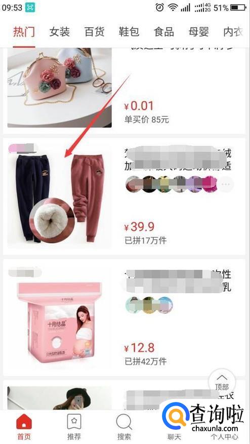 首先,在手机上打开拼多多,向上滑动屏幕找寻自己想要购买的商品。