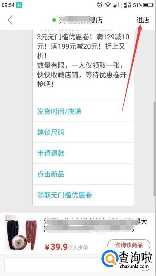 进入咨询聊天界面,不必理会,直接点击右上角的进店。