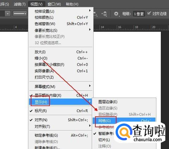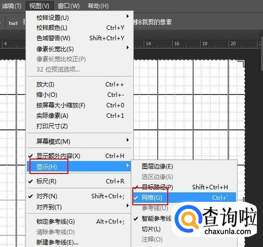 画好所需的直线后,执行【视图】-【显示】-【网格】命令。