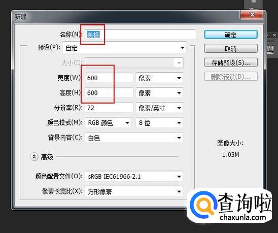 菜单栏:执行【文件】-【新建】命令,参数如下。