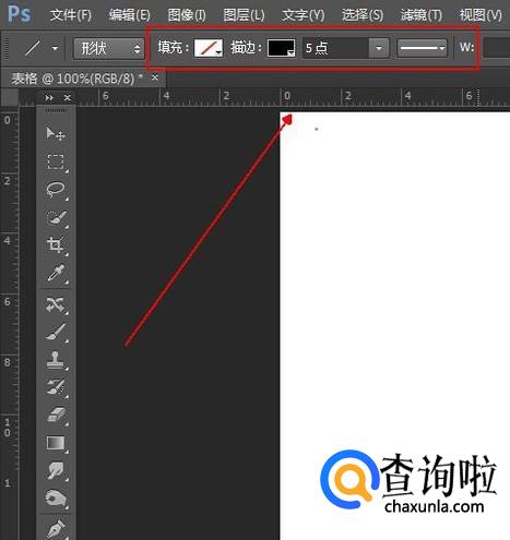 在【工具面板】上点击【直线工具】选项,在其工具栏上进行如下设置。