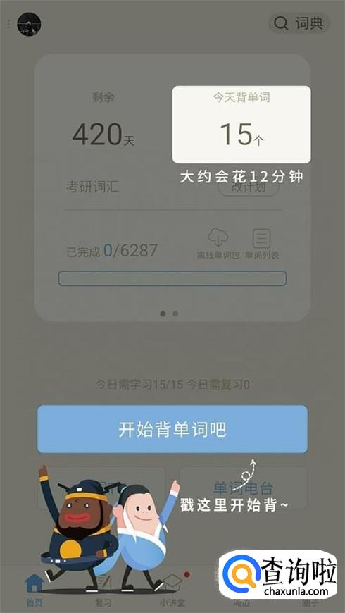 打开后系统后自动为你设置每天的所背单词数和复习计划等,如果自己想增减数量,也可以自行调整