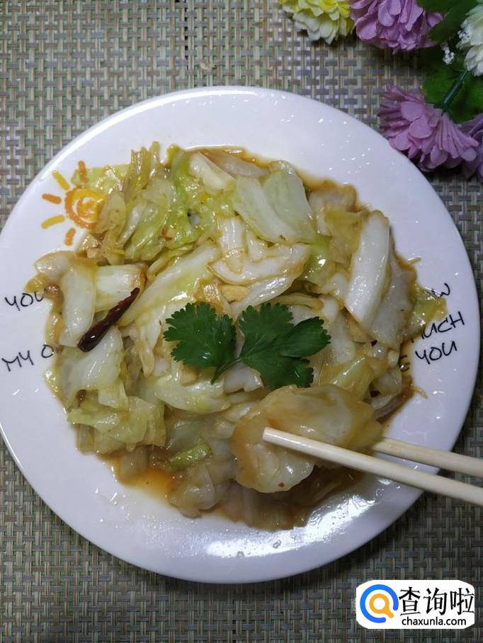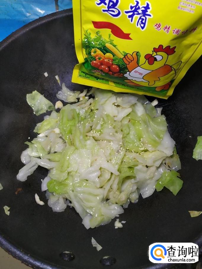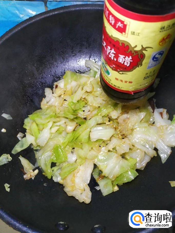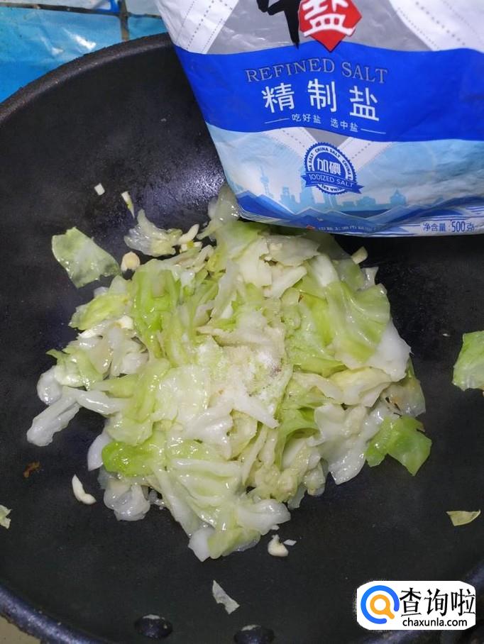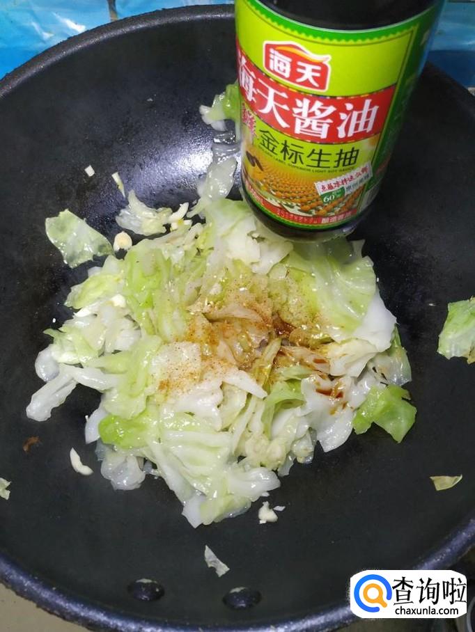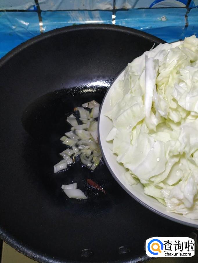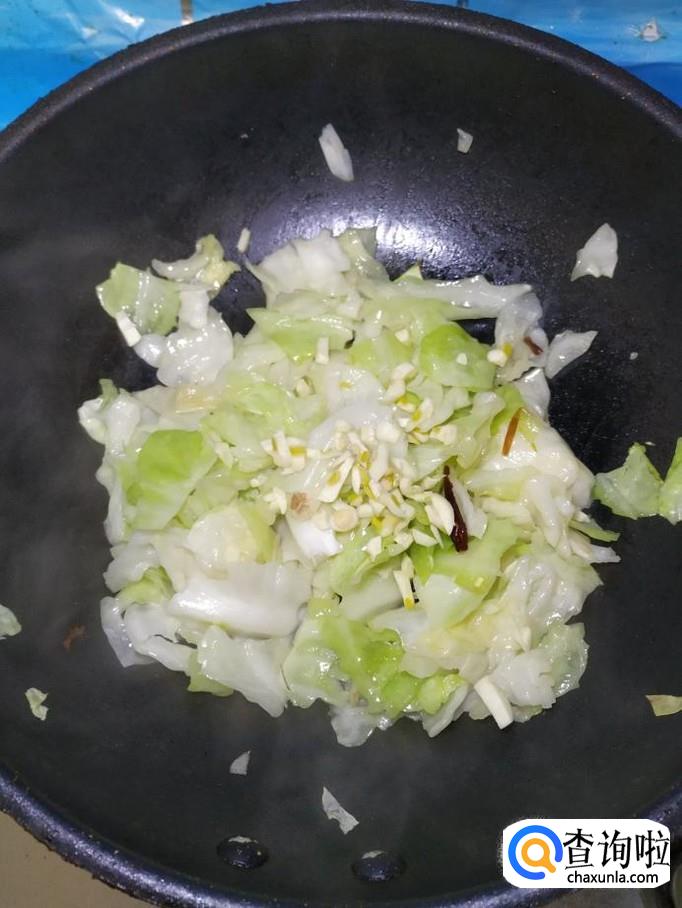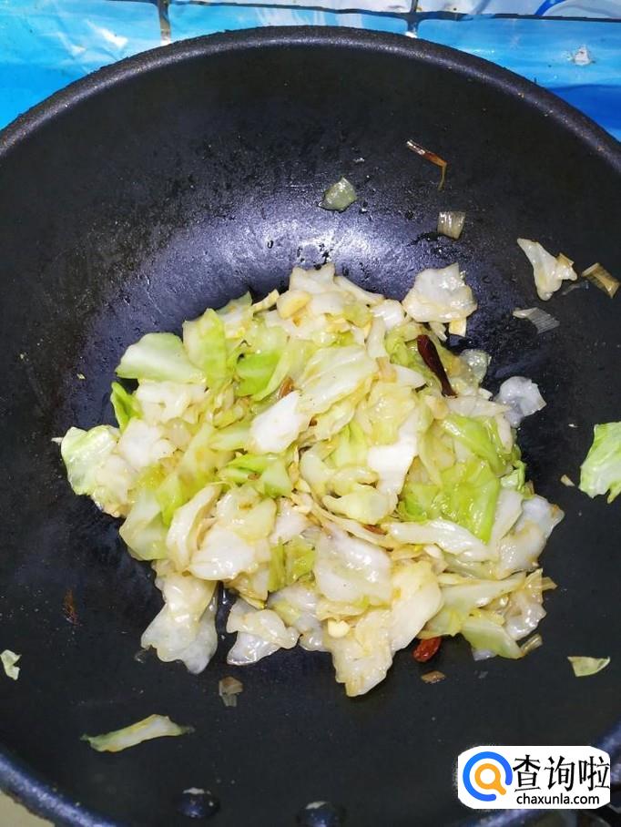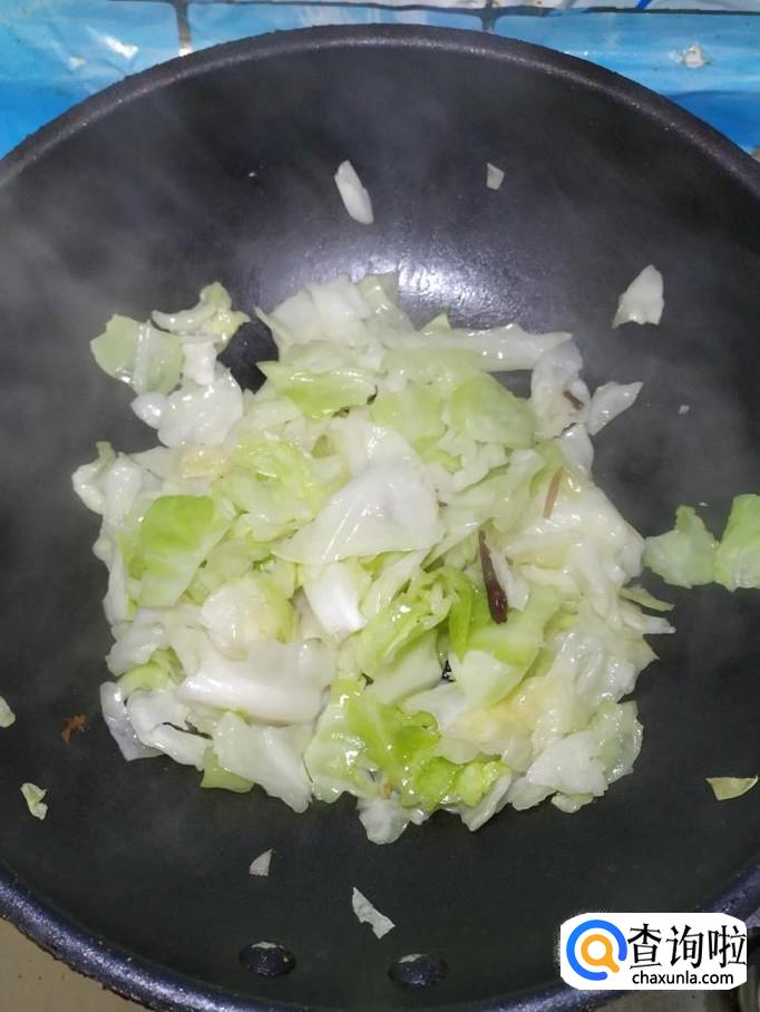 将包菜倒入锅中,翻炒均匀,炒至包菜开始变软就差不多了。
