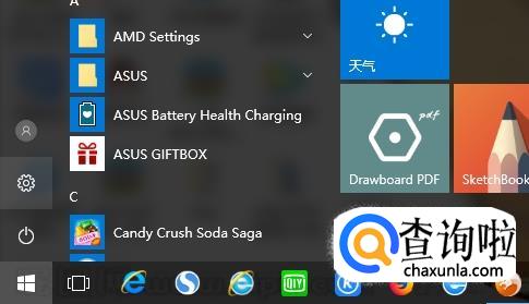 点击左下方的开始图标,点击设置。