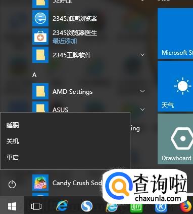 最后我们返回到关机界面,点击“电源”按钮,就只会出现“睡眠”、“关机”和“重启”三个选项了。