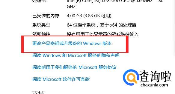 点击下面的“更改产品秘钥或升级你的Windows版本”