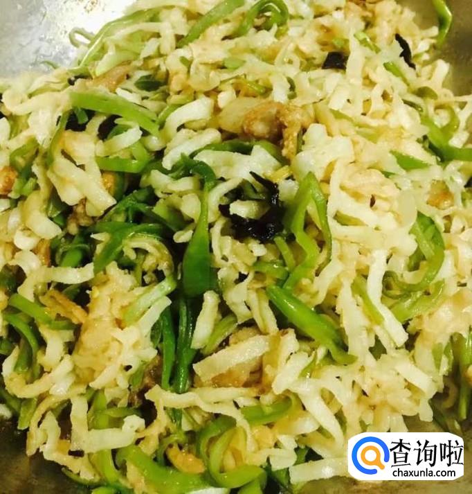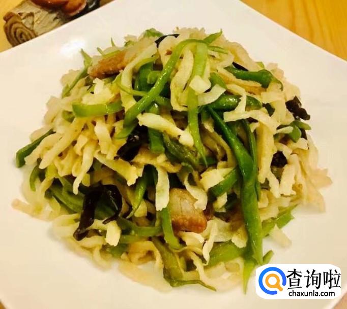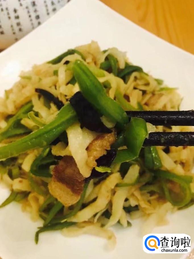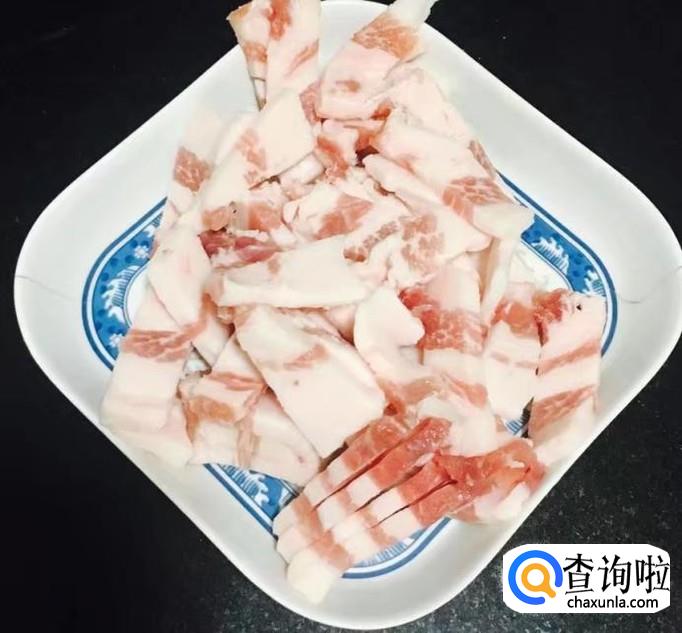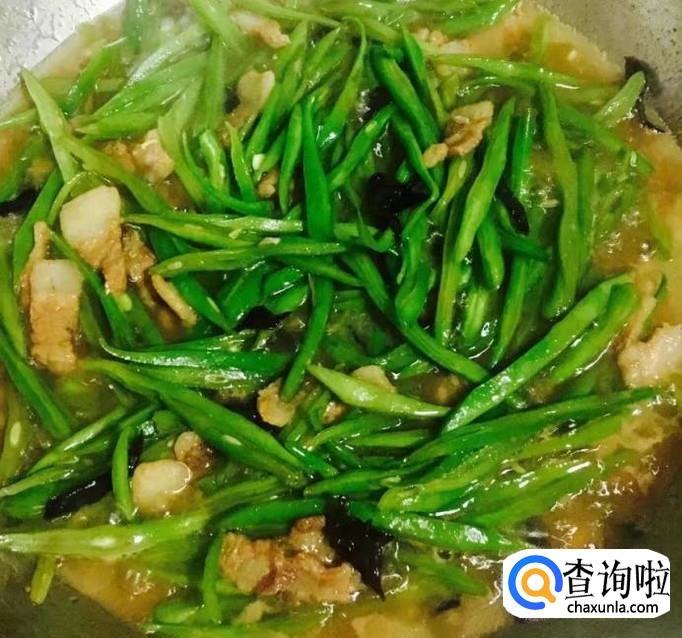 豆角、水发木耳择洗干净切成稍微粗一点的丝,五花肉一块冲洗干净切成厚薄均匀的五花肉片,葱、蒜分别切成葱花、蒜片备好
