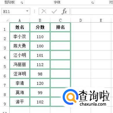 比如,下图中的数据,B列是分数,对这些分数进行排名。结果显示在C列中。